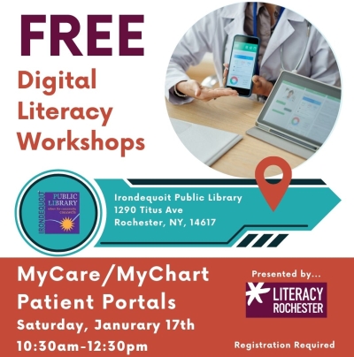 Our friends from Literacy Rochester will join us on Saturday, January 17, at 10:30 AM, for their next Digital Literacy Workshop. MyCare/MyChart Patient Portals will teach attendees how to access and navigate their online patient portals to view medical records, schedule appointments, communicate with healthcare providers, and manage their health information securely. Digital Literacy Workshop: MyCare/MyChart […]
