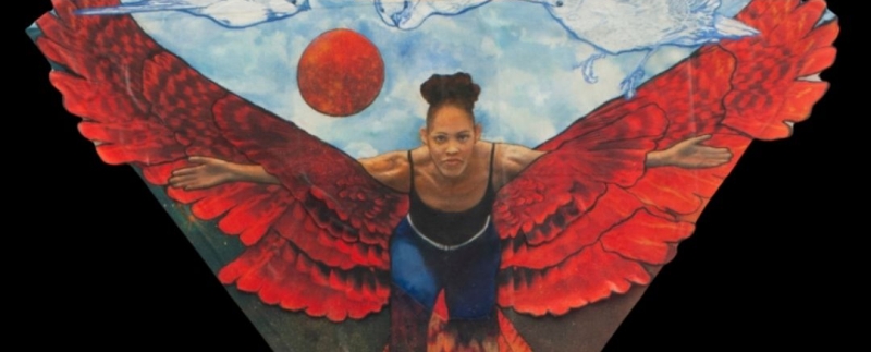 At the heart of the installation is “Triumph,” the inaugural inspirational kite honoring Nicolette Ferguson, a 21-year former Principal Dancer for world-renowned Garth Fagan Dance and a breast cancer survivor. The piece represents the strength and power of her triumphant re-emergence as a phoenix rising above circumstance with quiet strength, humility, and resilience. Her story anchors a growing constellation of companion storytelling kites, including “Elements,” featuring Artistic Director and Principal Dancer Norwood “PJ” Pennewell, Natalie Rogers-Cropper, Executive Director of Garth Fagan Dance, and Garth Fagan himself. Additional statement pieces demonstrate an interpretive range of emotional depth—a hallmark of Boddie-Rice’s portrait work.