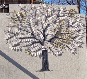 The Giving Tree is a huge metal sculpture that was mounted right near the front door of the new library. If you would like to be a part of the Giving Tree, please download the Giving Tree Donor Form.